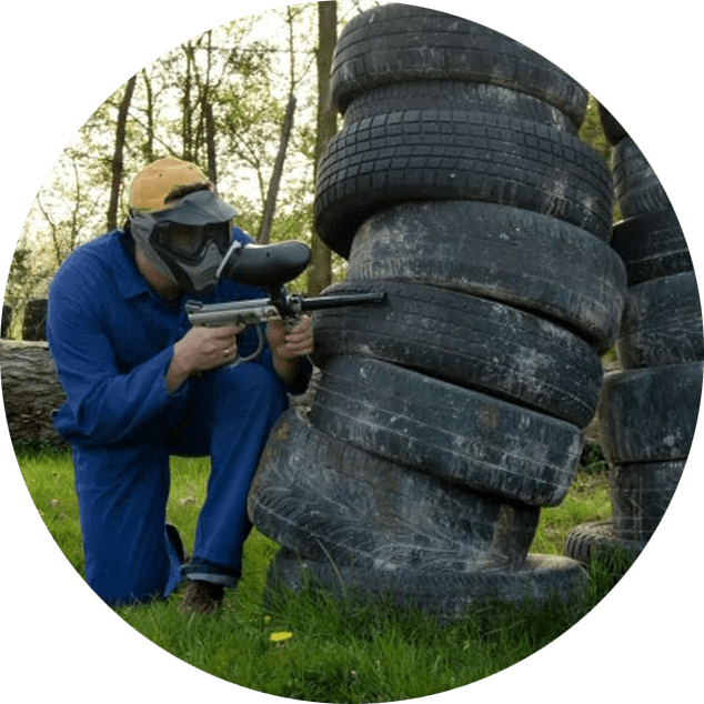 On arrival you will first put on an overall, this is for the protection of your clothing and catches the paint. However, if the paint does get into your clothes or the like, this is not a problem as the paint is very easily washable. The paint balls are starch-based, biodegradable and washable. You will also wear a mask, which will protect the face while the game is being played. We recommend bringing your own old shoes, which are allowed to get dirty.