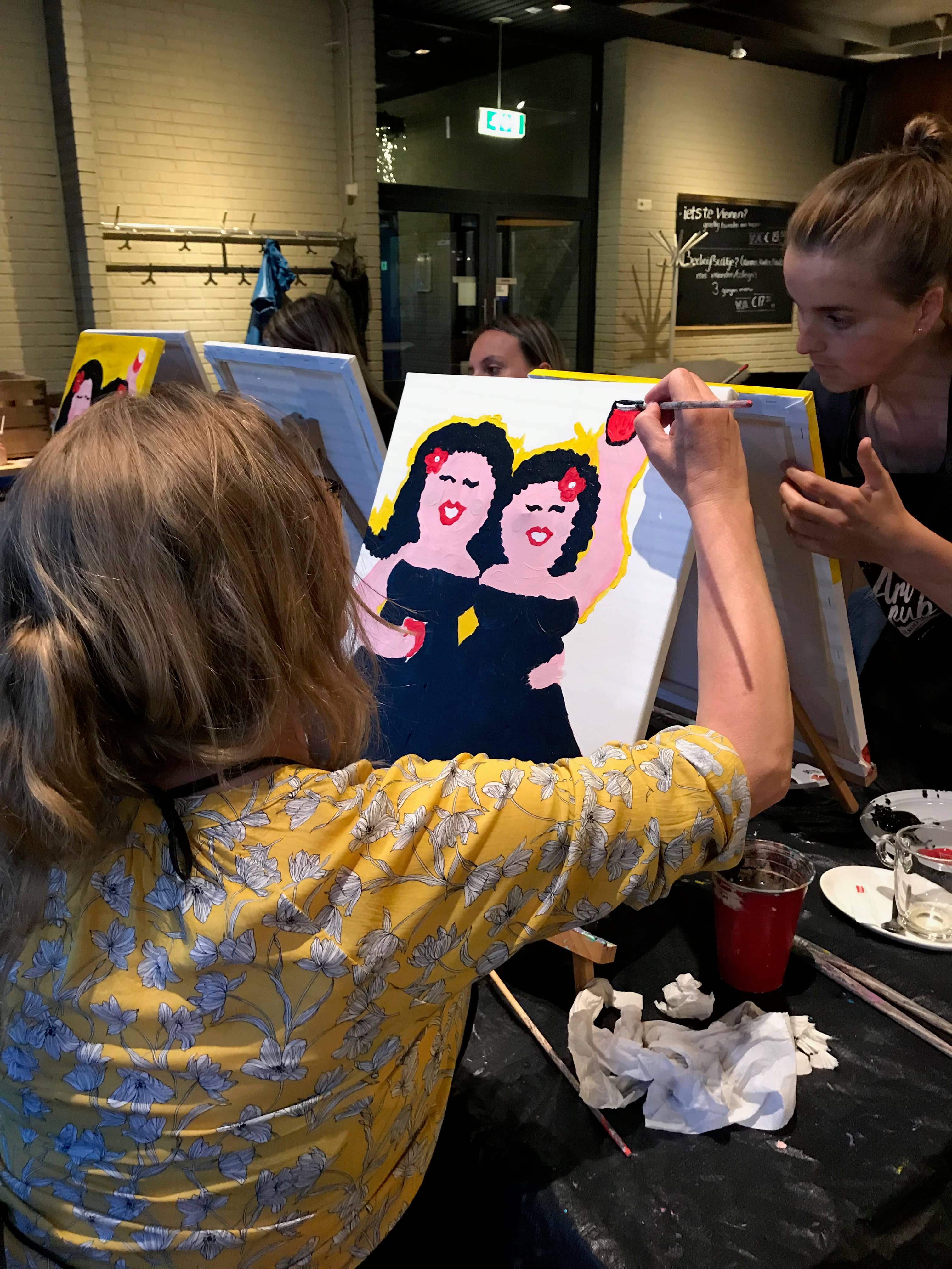 Painting is a great way to relax and clear your head. Experience is not necessary, the painting is explained step by step. This is a fun painting workshop for companies, families or bachelor parties, with the aim of having fun together and creating something. We will paint on a canvas of 40 x 50 cm and the theme of the painting is "Fat Ladies". Of course, other themes can be chosen on request, or we can work on one big painting! Are you looking for a lasting memory? Then come and paint!